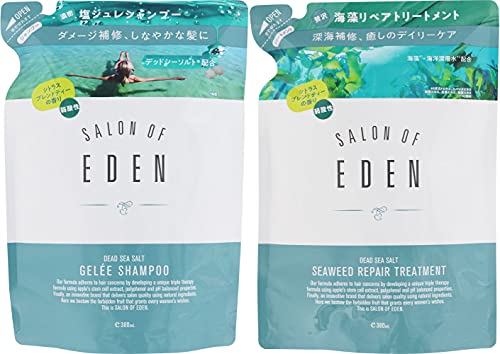 【つめ替ペアセット】サロンオブエデン 塩ジュレシャンプー+海藻リペアトリートメント 各380ml