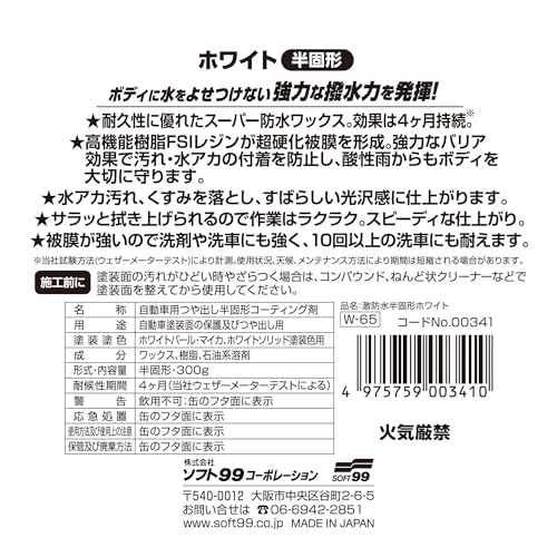 ソフト99(SOFT99) ワックス WAX 激防水WAX ホワイト 300g 自動車塗膜の保護・艶出し用 スポンジ 00341