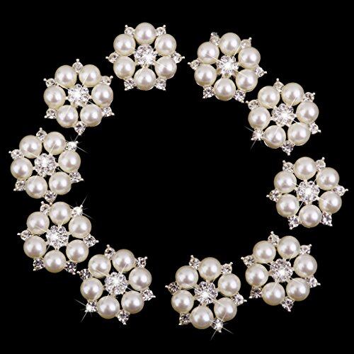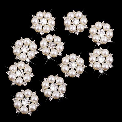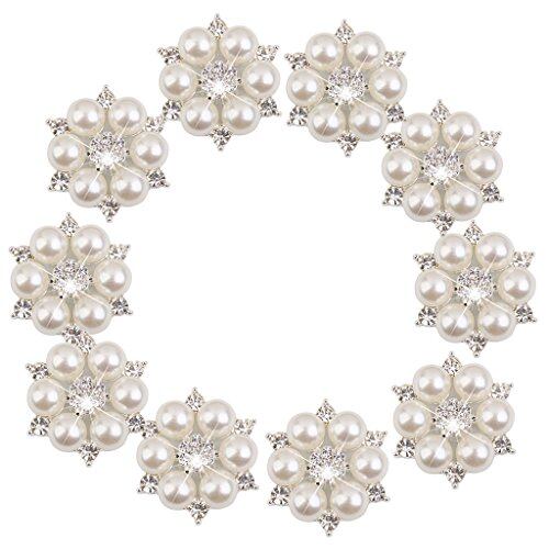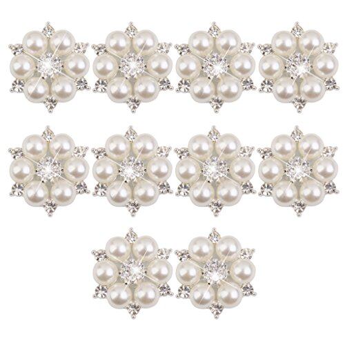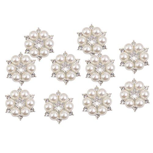 クリスタル 人工パール 飾りボタン 花形 28mm ベージュ 10個