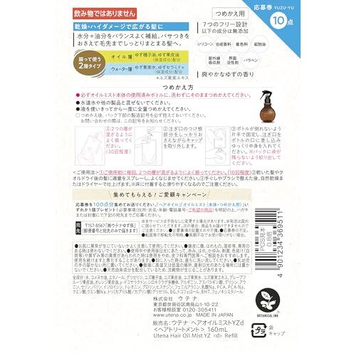 ウテナ ゆず油 無添加オイルミスト (つめかえ用) 160mL