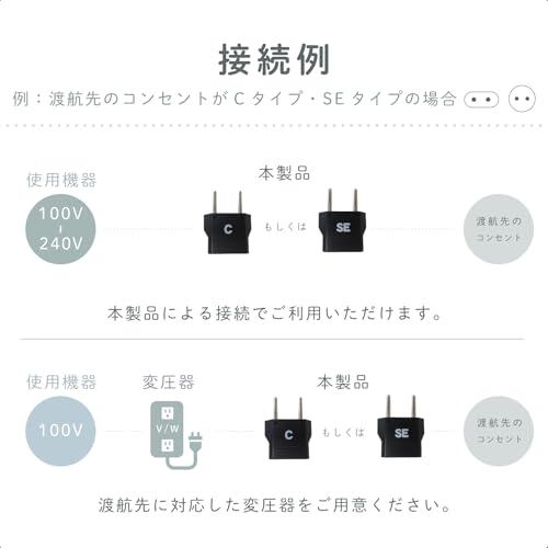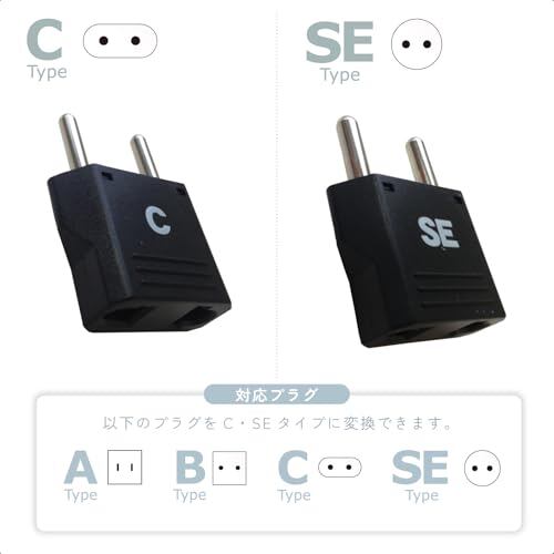 4種類のプラグ(ABCSE)をC&SEタイプに変換できる海外旅行用マルチ変換プラグ