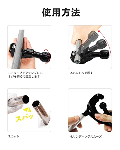 切断能力:切断可能な直径:シルバー3-28mm/ブラック3-35mm,切断可能な厚さ:3mmまで。切断可能な素材:銅管、アルミ管、ステンレス管、塩ビ管などです。