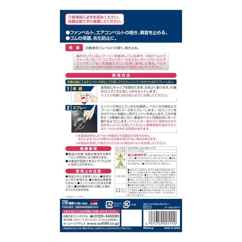 ソフト99(SOFT99) 99工房 補修用品 ベルト鳴き止めスプレー 40ml 自動車用ゴムベルトの滑り、鳴き止め 09111