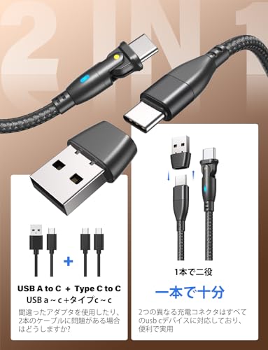 【PD60W・USB Type C ケーブル & USB-A変換アダプタ付き】USB-A変換アダプタが3個付き、「USB-A」と「USB-C」の2種類の接続モードを字自由変更ができます、3本セットを取りして、AndroidやType-Cやi-Productsなどの設備に充電できます。Type-Cデバイスの多種類モードをサポートします。
