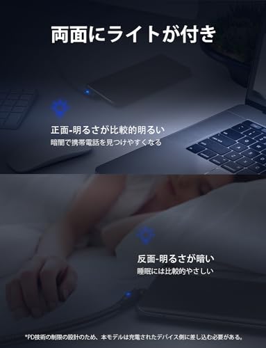 【LEDライト付き】LEDの提示ライト付き、暗闇でもすぐに充電デバイスが見つかります。(ご注意:USB-A変換アダプタを利用時、充電ケーブルは18Wのケーブルになりました。18Wのケーブルは電源を接続時、LEDの提示ライトはすぐに点灯します。60Wの充電ケーブルは【充電設備】を接続時、LEDの提示ライトは点灯します。)