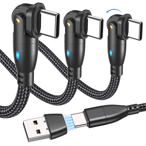 PD60W USB Type C ケーブル L字型 180°回転可【1m/2m/2m・3本セット】USB-A/USB-C to USB-C/Type-C 3A急速充電 & 高速データ転送 & タイプc 充電ケーブル AndroidなどType C機種対応【TUNKIA】(1m/2m/2m・黒)