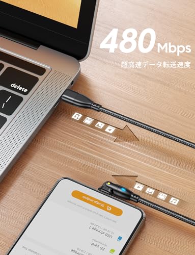 【超高速データ転送 & PD60W高速充電対応】「USB PD(Power Delivery)につきまして、「USB-C to USB-C」の利用場合(接続する機器がPD対応している必要がある)、最大60Wの急速充電が対応できます。超高速データ転送のスピードは480Mbpsです。