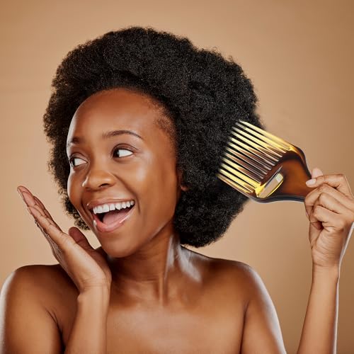 VOCOSTE 広歯アフロヘアピックコーム ヘアスタイリングツール プラスチック製 アンバー