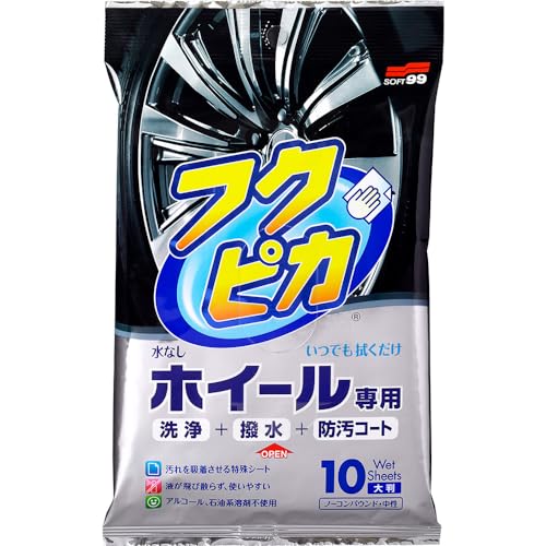 ソフト99(SOFT99) フクピカ 足回りケア クリーナー フクピカホイール専用拭くだけシート 自動車のアルミ・スチールホイール 樹脂製ホイールキャップの洗浄及び保護 10枚 00493