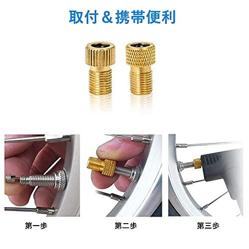 【米式・仏式、複数兼用モデル】仏式/米式バルブ対応、アダプターは必要ありません。仏式バルブと米式バルブを簡単に切り替えることができます。確実なスレッドオンバルブ接続により、空気漏れやバイクタイヤバルブの損傷がなく、超タイトなシールが可能になります。非ねじ式バルブエクステンダーとは互換性がありません。取り外し可能なコアを備えた仏式バルブの場合、コアをバルブステムにしっかりとねじ込むように特別な注意を払う必要があります。