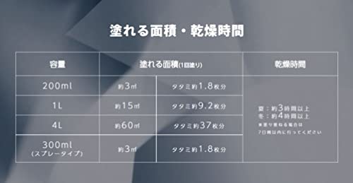 【塗り面積(1回塗り)】:約3平方メートル(タタミ約1.8枚分)
