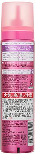 成分:水、エタノール、LPG、(ジメチコノール/シルセスキオキサン)コポリマー、ポリクオタニウム-11、クエン酸、セテアレス-50、ラウリル硫酸Na、ラウレス-23、EDTA-2Na、BHT、リン酸K、サリチル酸Na、メチルパラベン、香料