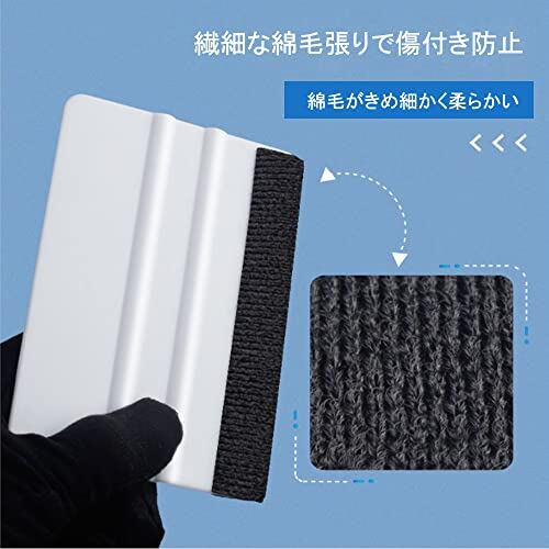 【耐摩耗性】傷が付きにくい特製スキージーです、カッティングシートにも車にもやさしい。スキージーの硬さも車のボディを傷めないないよう、先端部分は素材にやさしくキズが付かないフェルトを付けました。