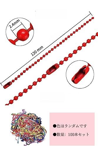 【商品内容】ボールチェーン100個セット(ランダムカラー)、サイズ:ボール径約2.4mm、全長約12cm(±0.5cm)。