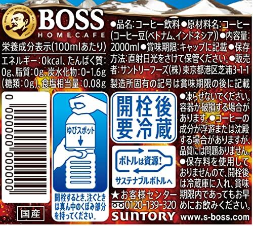 サントリー ボス ホームカフェ 無糖 大容量 アイスコーヒー 2L ×6本