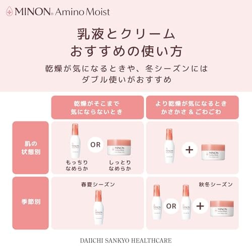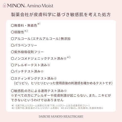 【ミノンから生まれたフェイスケア「ミノン アミノモイスト」】敏感肌を研究し続けた製薬会社がつくる独自の処方で「やさしさ」×「美しさ」を実現しました。バリア機能が低下しがちな肌を守りながら洗い、うるおいで満たして、すこやかに美しく保ちます。