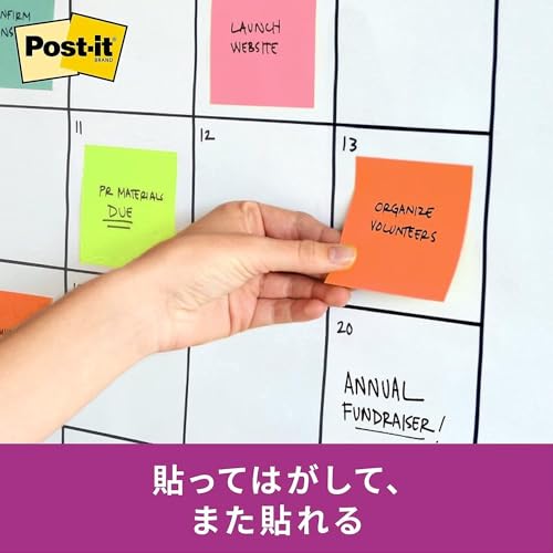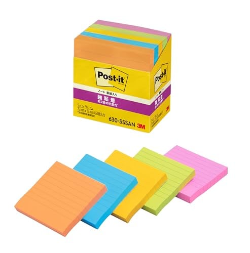 ポストイット 付箋 強粘着 罫線 ノート ネオンカラー 75×75mm 90枚×5冊 630-5SSAN