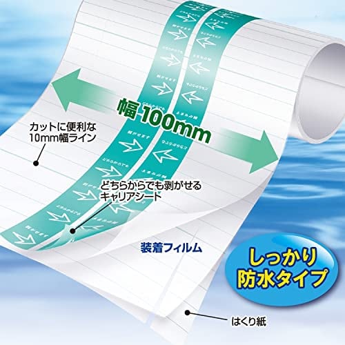 箱側面の引出口から必要な大きさにカットできるロールタイプ防水フィルムです。
