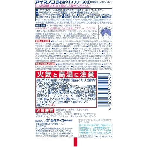 アイスノン 頭を冷やすスプレーGOLD 冷却スプレー 冷感 ひんやり 冷たい 頭皮 クールダウン 暑さ対策