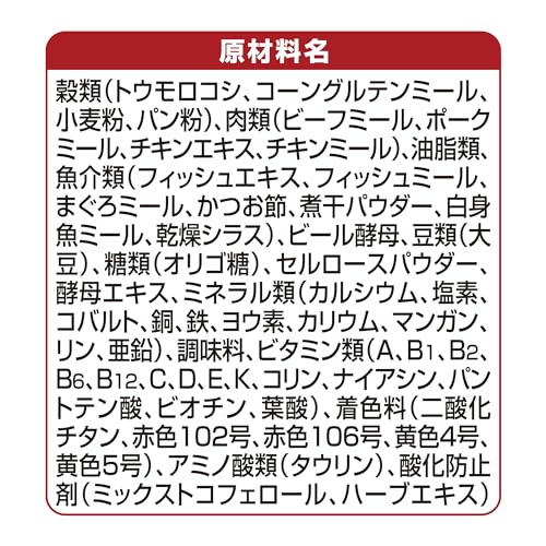 栄養成分:タンパク質:30.0%以上、脂質:16.0%以下、粗繊維:3.0%以下、粗灰分:7.0%以下、水分:10.0%以下、カロリー:約400kcal/100gあたり
