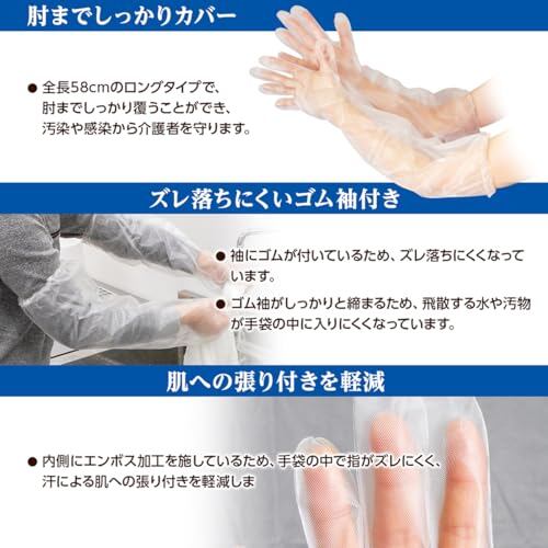 プラスハート 使い捨て介護用手袋 ロング 30枚入 フリーサイズ ゴム袖付 70207