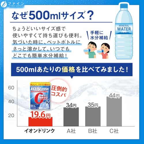 経済的コスパが良いというお声を多くいただいております。使いやすいスティック状の顆粒タイプで500mlのペットボトルにサッと溶かすだけのちょうどよい分量サイズです。一箱でペットボトル22本分お使いいただけます。