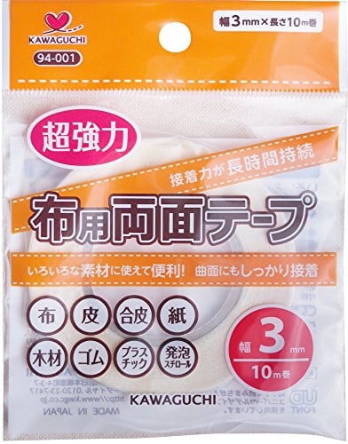 KAWAGUCHI 超強力 布用 両面テープ 透明 10m 幅3mm 94-001