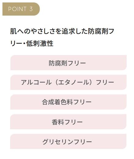 防腐剤フリー、アルコール(エタノール)フリー、グリセリンフリー。