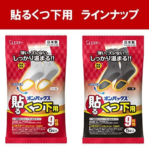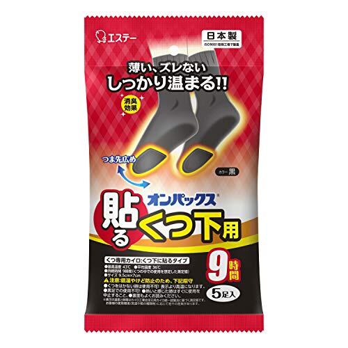 オンパックス くつ下用 靴下 足 貼るカイロ 黒タイプ 5足入 【日本製/持続時間約9時間】