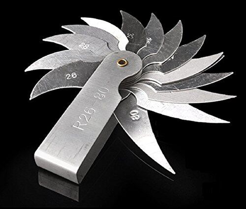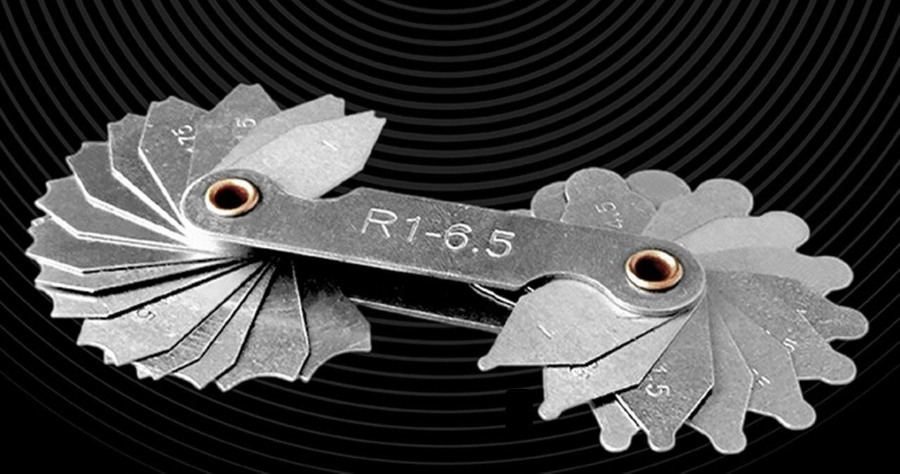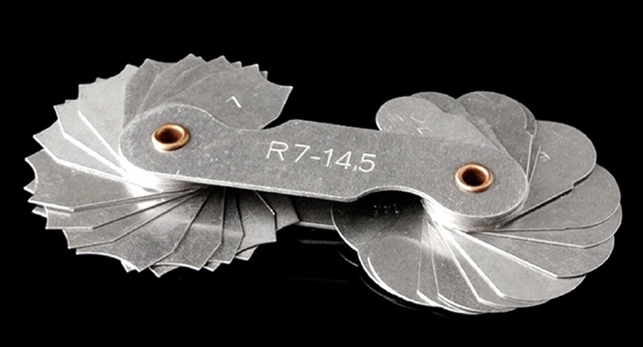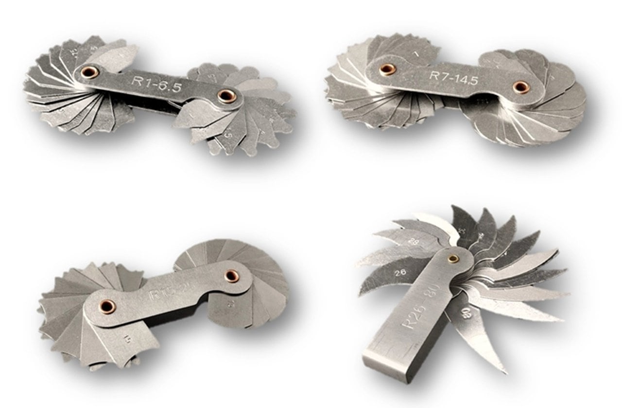 ラジアスゲージの4点セット品になります。<br> パイプの外径等の円溝型のR(半径)の測定が可能になります。<br> R1-R6.5 16枚 <br>R7.0-R14.5 16枚 <br>R15-R25 16枚 <br> R26-R80 16枚<br>