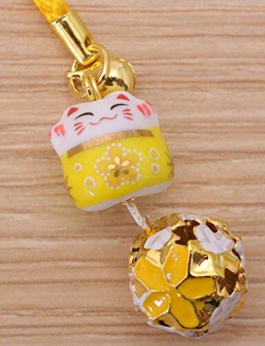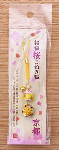 まつみ工芸 根付け 携帯ストラップ 招福桜まねき猫根付ストラップ 黄色