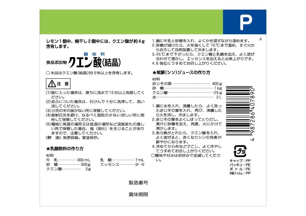 健栄製薬 【食品添加物】クエン酸 500g