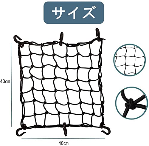 YFFSFDC ツーリングネット バイクネット 40cmX40cm バイク用品 カーゴネット 荷物固定 伸縮性 荷崩れ防止 フック付き (ブラック)