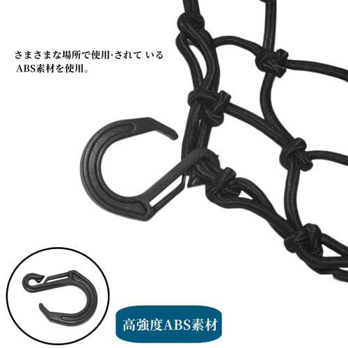 【固定用のフック付き】ラテックスネットは6個のABS樹脂のフックが付きのため、固定性が抜群で、バイク本体や品物に傷を付けません。