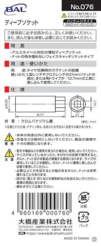 BAL(大橋産業) 自動車整備用工具 アルミホイール用ソケット 21mm No.76