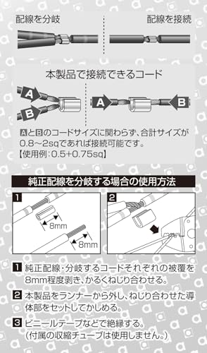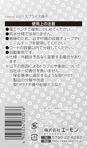エーモン(amon) スプライス端子 AV(S)0.8~2sq 15個入 芯線を切断せずに分岐できる 3327