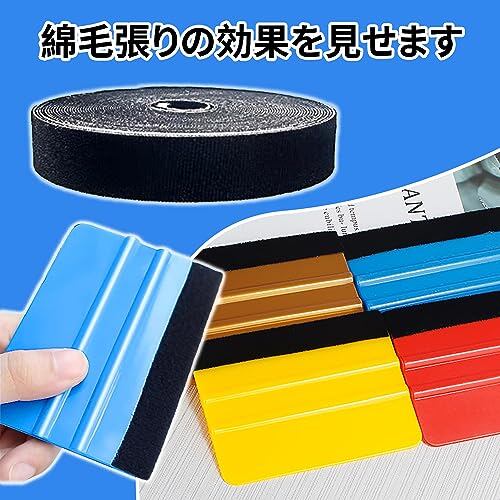 カーフィルム ヘラ フェルトスキージー スキージー フェルト セット 補助ツール、傷のないフィルム、泡のないフィルム、四方スキージ交換用ふわふわクロス、スキージエッジラッピングに適しています(フィルムスクレーパーなし)