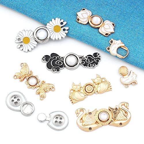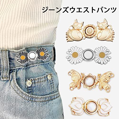 【パッケージ内容】ウエスト調整ピンバックルの長さ:約48mm、幅:約21mm、穴径:約3mm。かわいい花柄のバックルが付いたジーンズの調整ボタン6個セット。フック2個で構成されています。