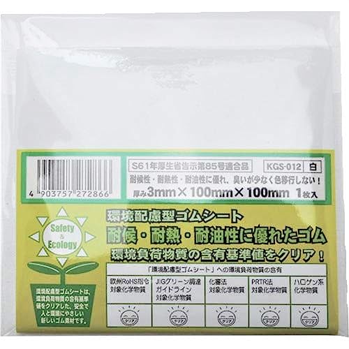 和気産業 環境配慮型ゴムシート 白 厚み3X幅100X長さ100mm 屋外 すべり止め クッション材 KGS-012 1枚入り