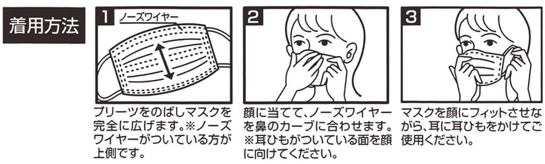 素材・材質:表地=ポリエステル(スパンレース不織布)・ポリプロピレン、フィルター=ポリエチレン(メルトブロー不織布)<br>裏地=ポリプロピレン、ゴム紐=ポリエステル・ポリウレタン、ノーズワイヤー=ポリエステル