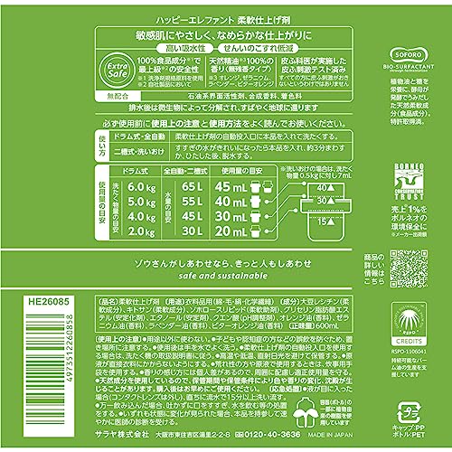サラヤ 柔軟仕上げ剤 ハッピーエレファント 本体 600ml