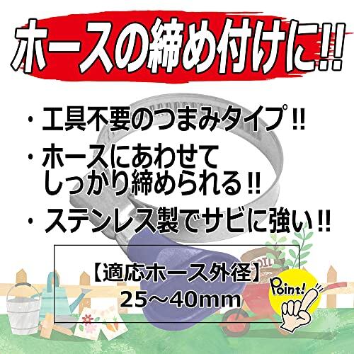 特徴:ホースにあわせてしっかり締めることができる、工具不要のつまみタイプ