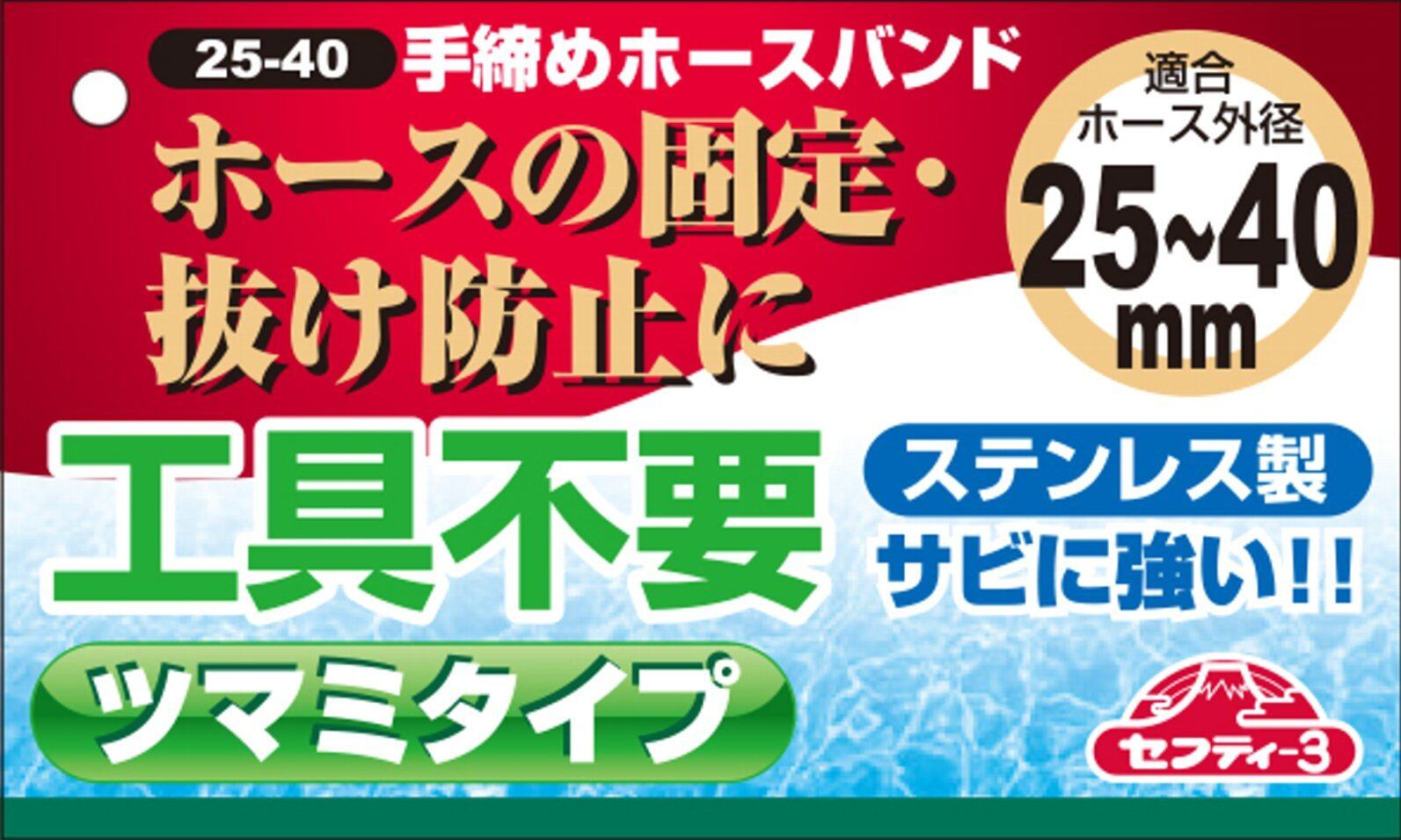 セフティー3(Safety-3) ステンレス製 手締めホースバンド 外径 25~40mm用
