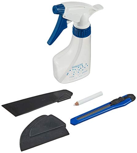 フィルム貼りに必要なフィルム貼りキット。(ハンドスプレー/プラヘラ/ラバースキージ(大)/型取り用ダマート/フィルムカット用カッター)