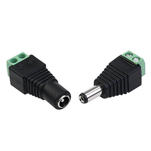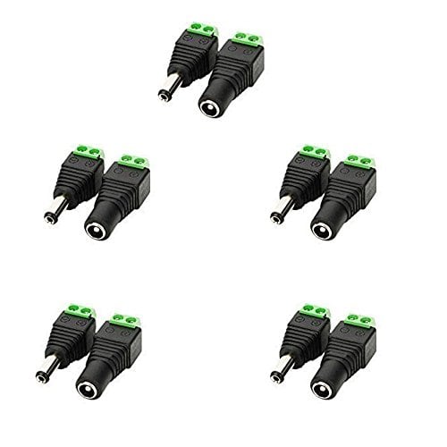 LitaElek 10個セット 5.5mm x 2.1mm DC 5V-24V電源アダプタコネクタネジ端子アダプタCCTVカメラとCOB LEDテープライト SMD LEDテープライト LEDストリップライト用DCジャック変換プラグ(5 メス + 5 オス)