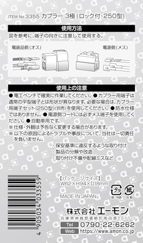 エーモン(amon) カプラー3極 (ロック付) 250型 1セット適合コードサイズ AV(S)0.5?2sq 3355