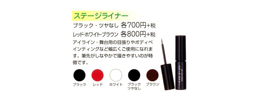 発色の良いリキッド状のライナーです。アイラインや舞台用の目張り、ボディペイントなどに、幅広く使用できます。