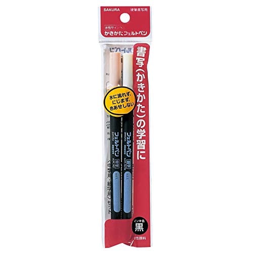 サクラクレパス 水性マーカー かきかたフェルトペン 細字・中字 FK2SM-P 2本入 黒