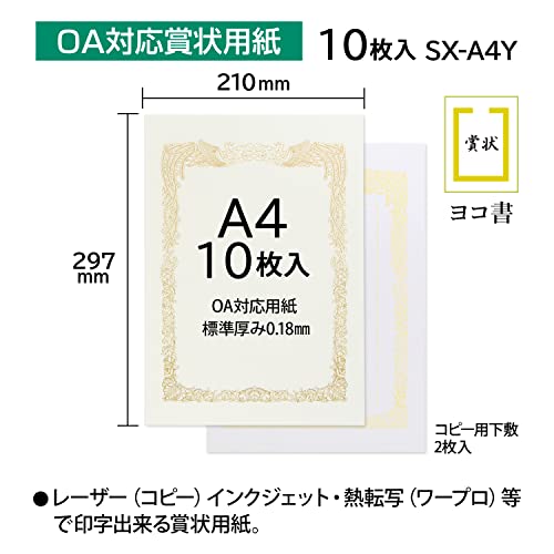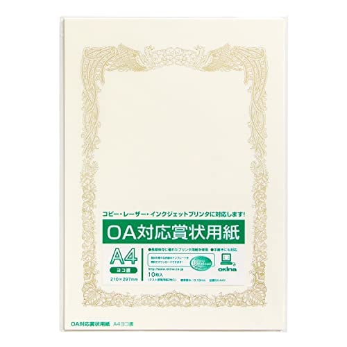 オキナ 賞状用紙 A4 横書き 10枚 プリンタ対応 SX-A4Y