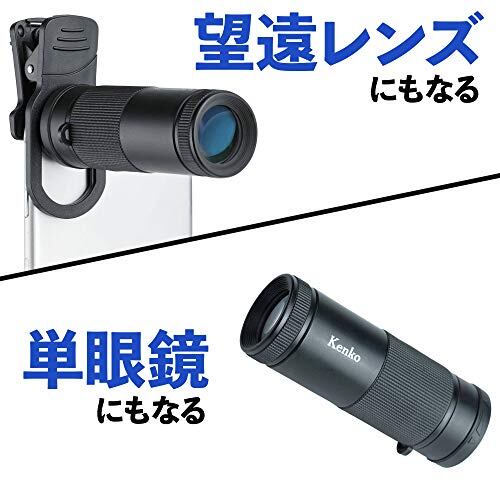 Kenko スマホ用交換レンズ リアルプロクリップレンズ テレ8× 望遠8倍 単焦点 単眼鏡兼用モデル 8倍 20口径 ダブルレンズスマホ対応クリップ KRP-8t ブラック